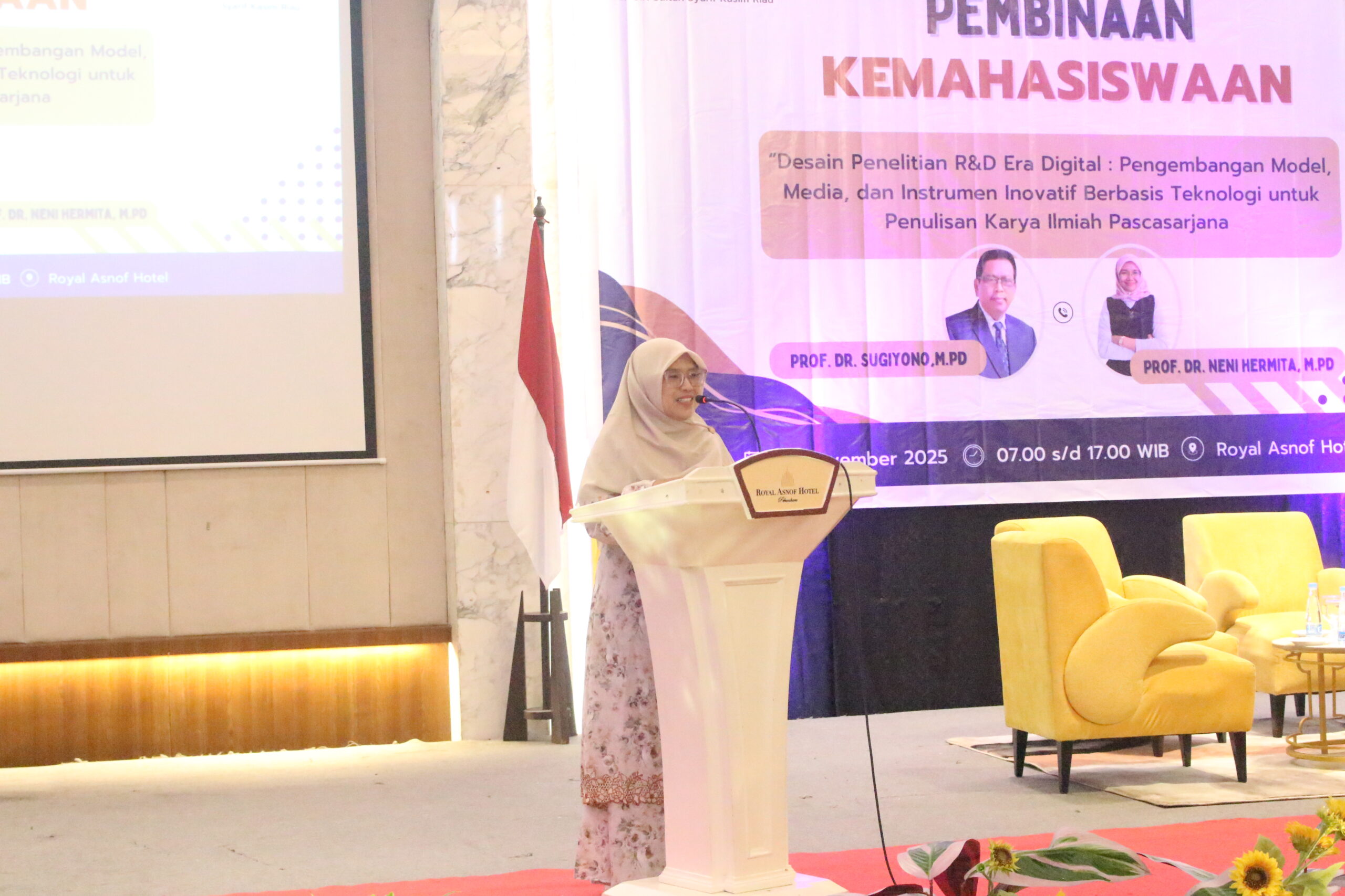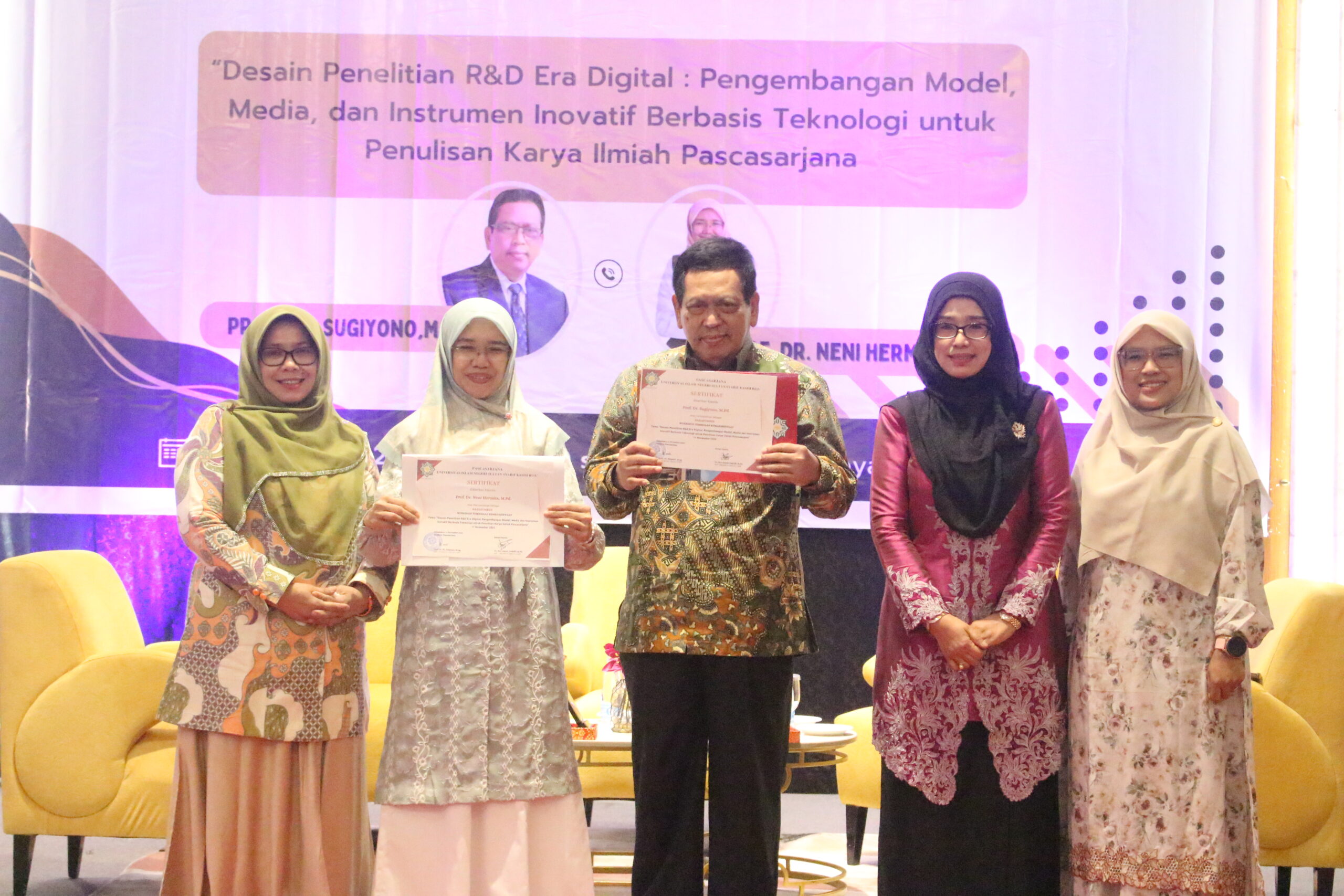 Di akhir sambutannya, beliau menyampaikan apresiasi kepada para narasumber Prof. Dr. Sugiyono, M.Pd (Guru Besar Universitas Negeri Jakarta, peraih rekor Muri sebagai penulis buku metodologi penelitian terbanyak) dan Prof. Dr. Neni Hermita, M.Pd, serta panitia yang telah mempersiapkan kegiatan dengan baik. Ia berharap, workshop ini dapat menjadi inspirasi, menjadi pemantik semangat, dan langkah awal bagi lahirnya karya-karya penelitian yang inovatif, aplikatif yang memberikan dampak positif bagi masyakatat.