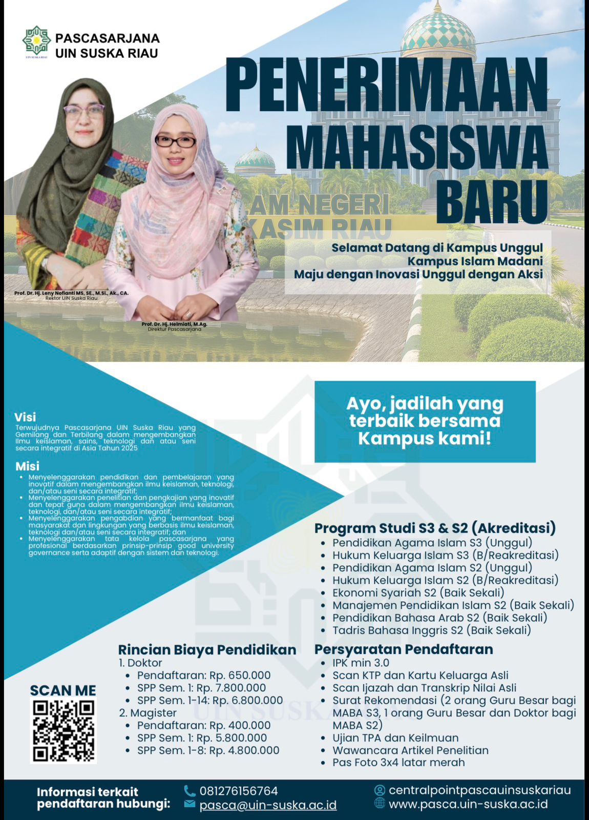 Pendaftaran Penerimaan Mahasiswa Baru Pascasarjana UIN Sultan Syarif Kasim Riau TA. 2025/2026 Telah di Buka..Ayo Segera Daftar melalui link berikut :