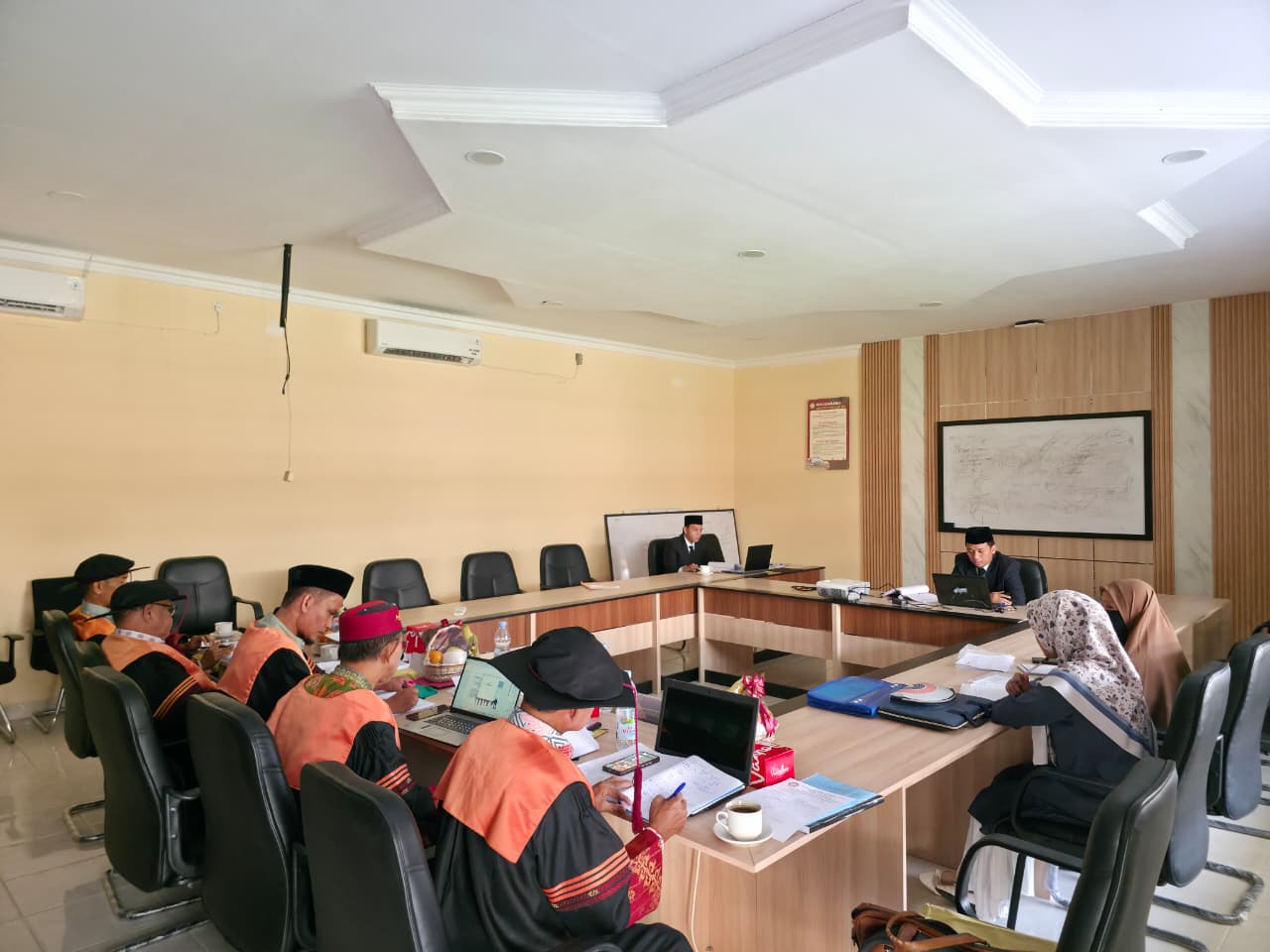 Sidang munaqasyah dipimpin langsung oleh Ketua Sidang Dr. H. Aprijon Efendi, Lc, MA., didampingi oleh Sekretaris Dr. Hakmi Wahyudi, MA. Turut hadir sebagai Dewan Penguji yang menguji kedalaman materi tesis para mahasiswa adalah Dr. Promadi, MA., Ph.D., Dr. Rusdi, MA., dan Dr. Masrun, MA., Ph.D.