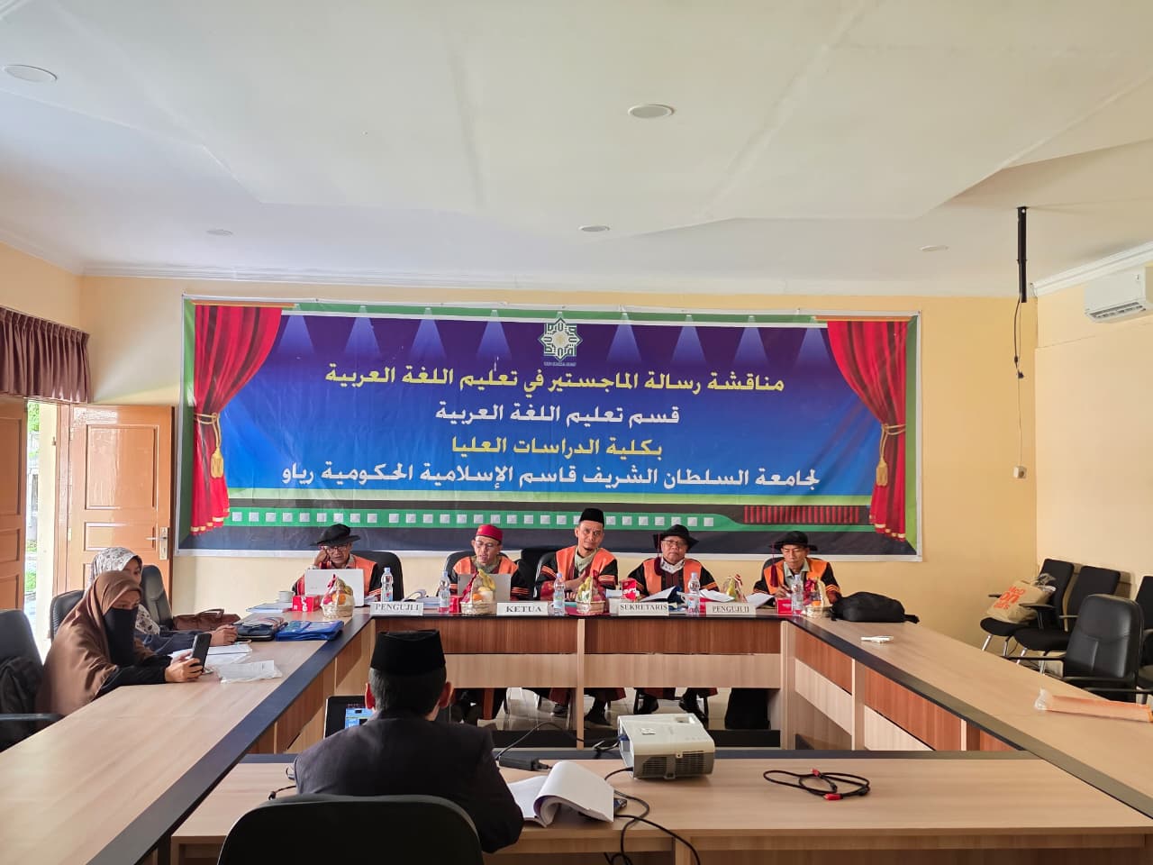 Dalam suasana akademik yang khidmat, kedua mahasiswa tersebut mampu menjawab pertanyaan kritis dari dewan penguji terkait metodologi dan implikasi penelitian mereka terhadap pembelajaran bahasa Arab di sekolah.