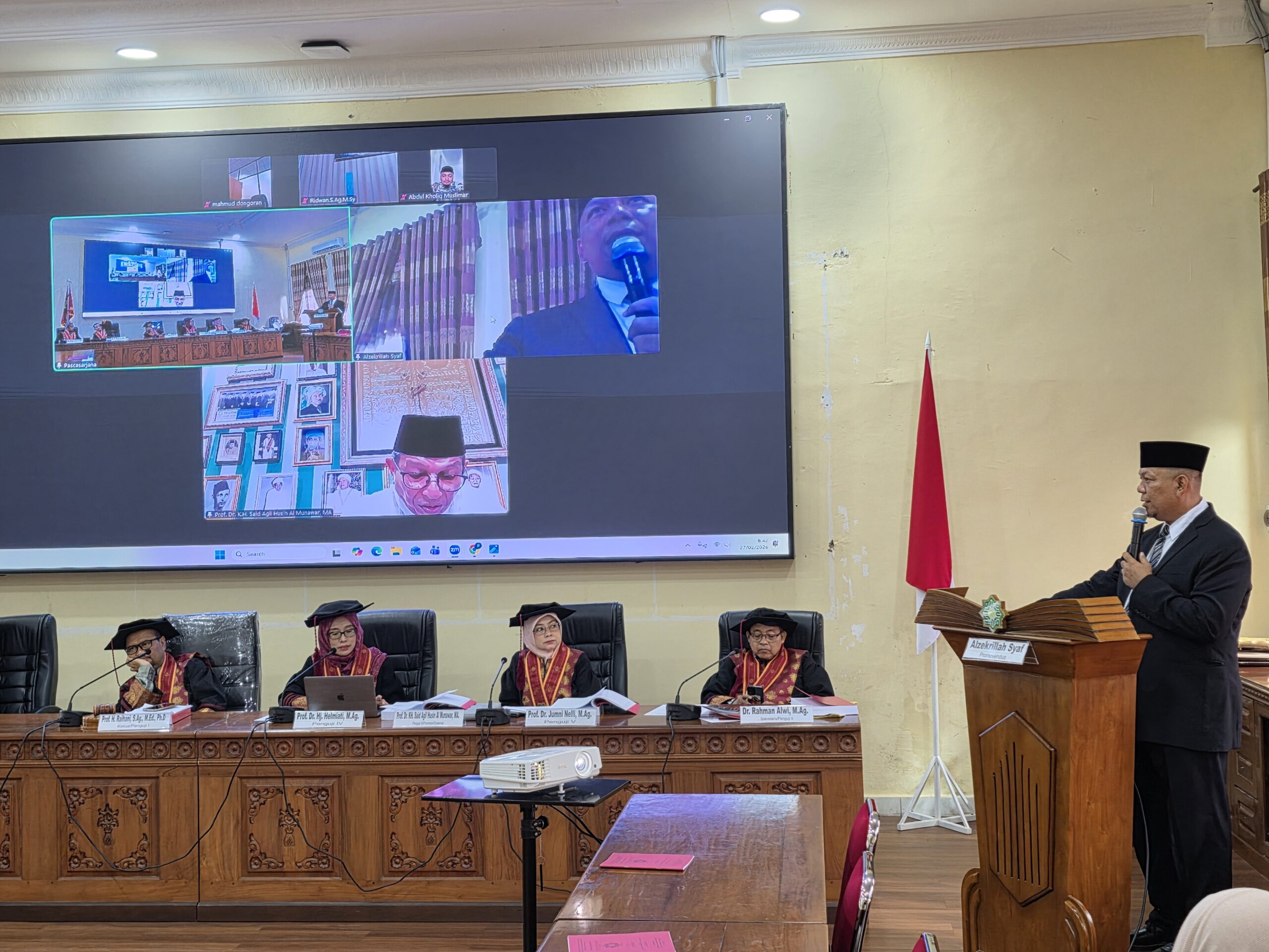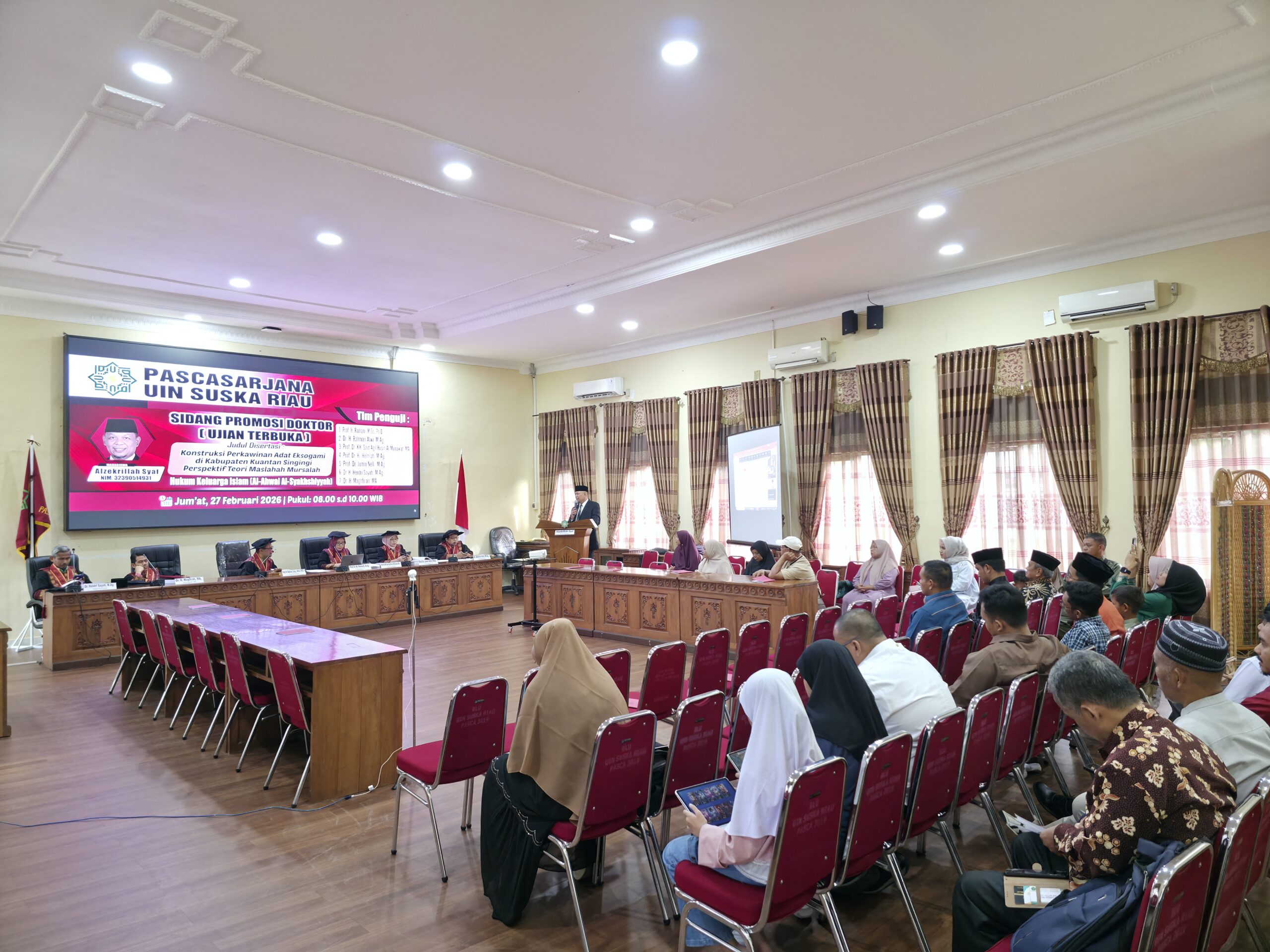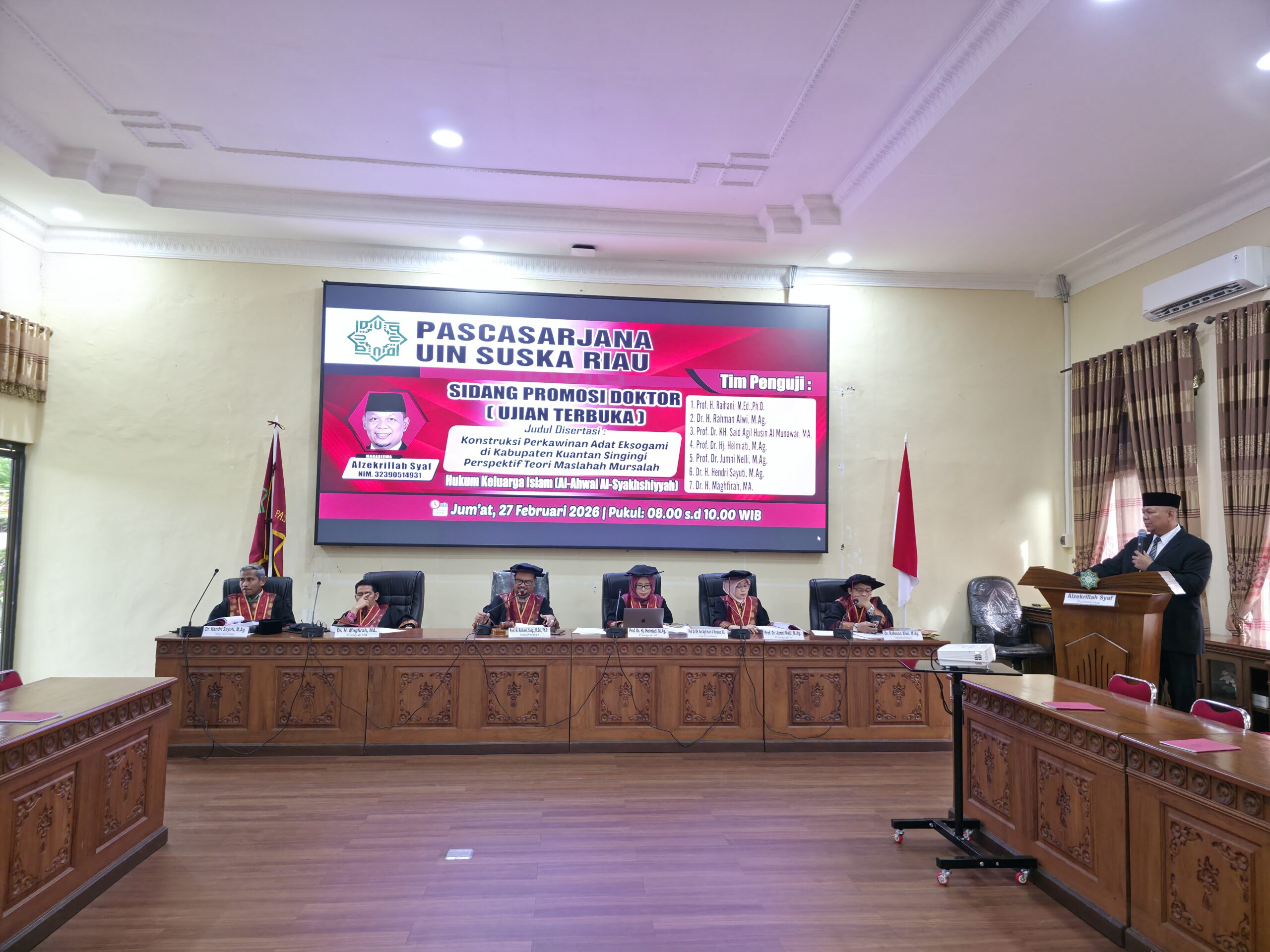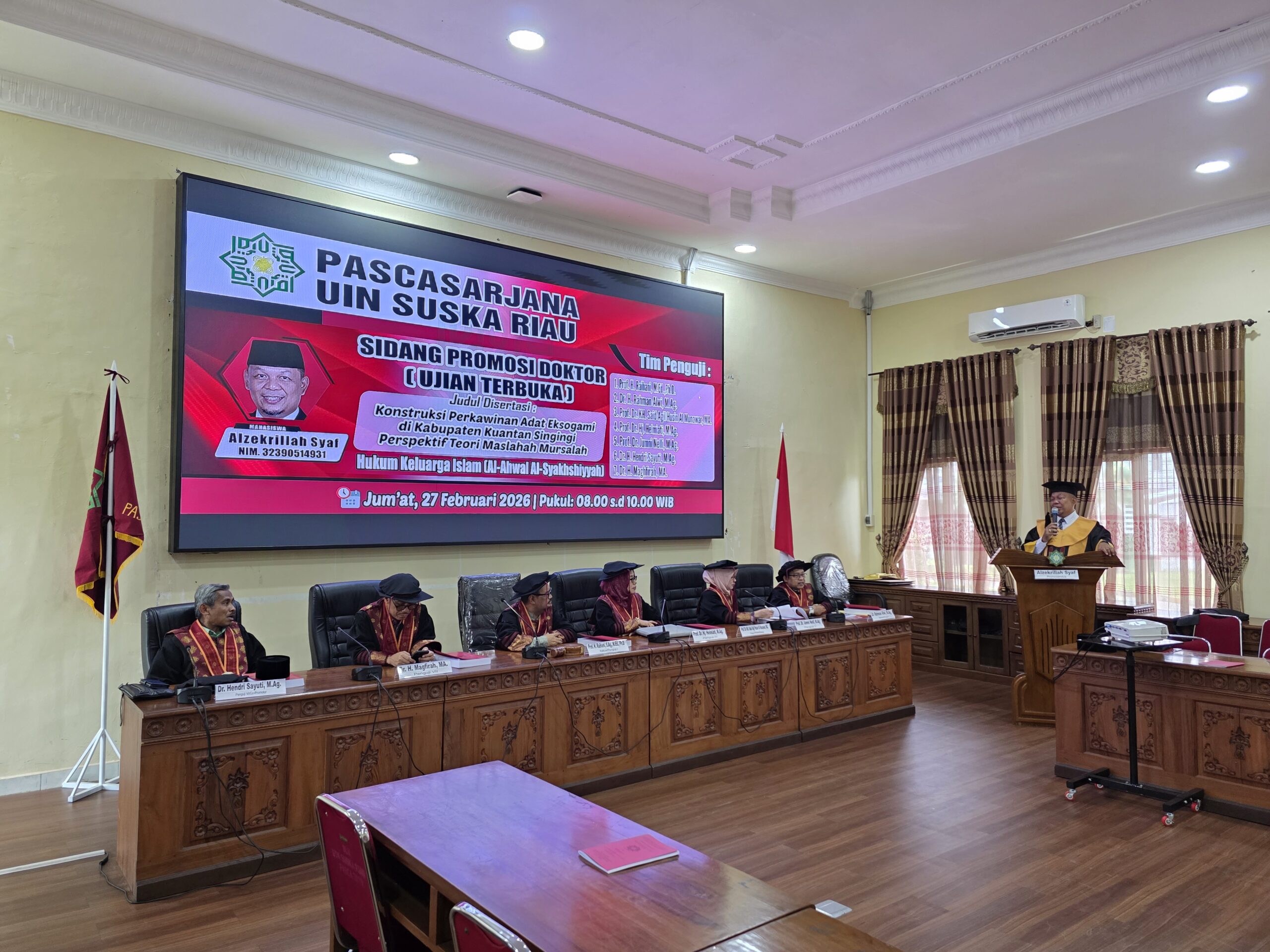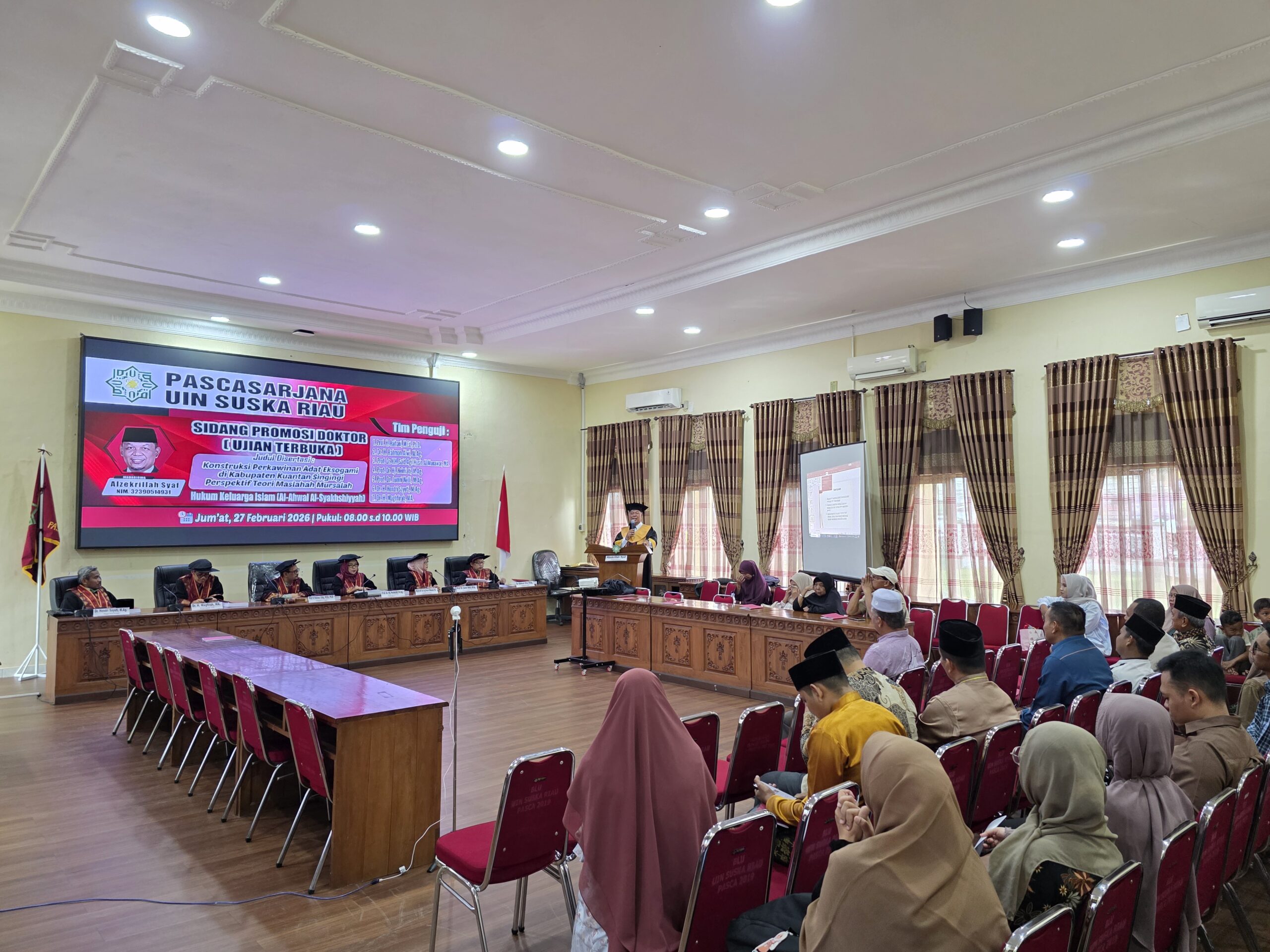 Sidang Terbuka Promosi Doktor Program Studi Hukum Keluarga Islam (HKI) Pascasarjana Universitas Islam Negeri Sultan Syarif Kasim (UIN Suska) Riau kembali melahirkan seorang doktor baru dalam bidang Hukum Keluarga Islam (Al-Ahwal Al-Syakhshiyyah).